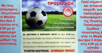 Πολύ σημαντικό και ιστορικό παιχνίδι των παλαιμάχων ποδοσφαιριστών της Ένωσης Παλαίμαχων Όμάδων Ηλιούπολης θα γίνει τη Μεγάλη Δευτέρα 2 Απριλίου…