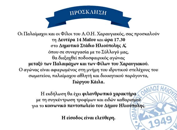 Σπουδαίο μεταξύ τους φιλικό θα κάνουν την Παρασκευή 11 Μαίου στις 17:30 μμ στο γήπεδο Ηλιούπολης οι πρωταθλητές Χαραυγιακός (2ος όμιλος Α’ ΕΠΣΑ) και Παλληνιακός (ΕΠΣΑΝΑ).