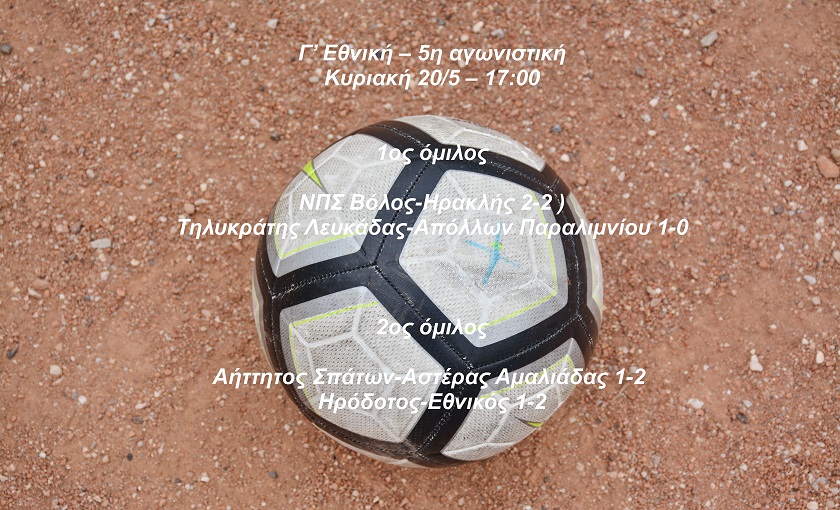 ΕΙΣΤΕ ΕΔΩ:Home»Γ εθνική»Γ’ Εθνική – 5η αγωνιστική Αποτελέσματα Μπαράζ Κυριακή 20/5 – 17:00