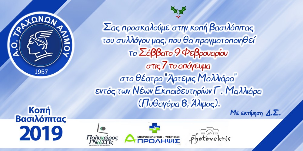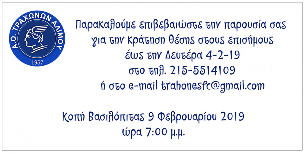 Η Κοπή της πίτας των Τραχώνων το Σάββατο 9 -02-19 ώρα 19:00