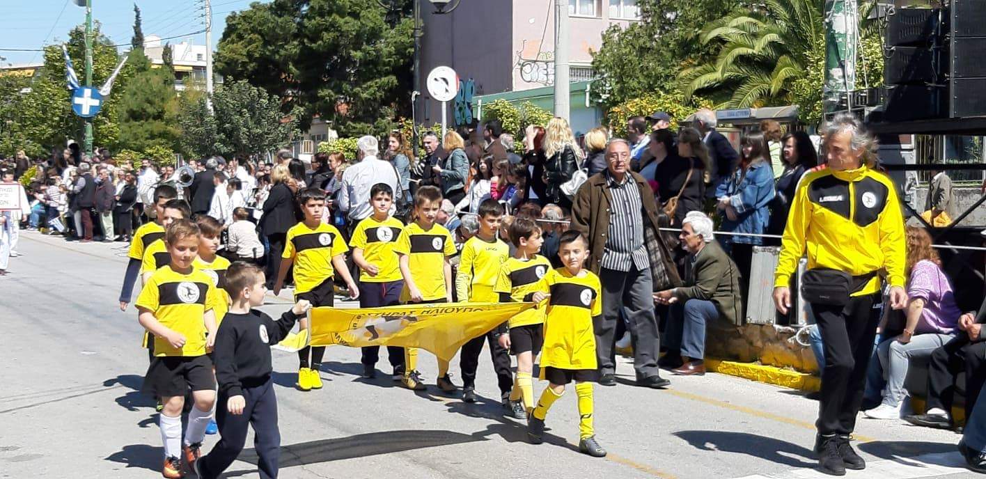 Άφησαν για λίγο τα γήπεδα ποδοσφαίρου τις προπονήσεις και τους αγώνες και μαζί με τους συμμαθητές τους και τα άλλα αθλητικά σωματεία έλαβαν μέρος στην μαθητική παρέλαση της Ηλιούπολης.