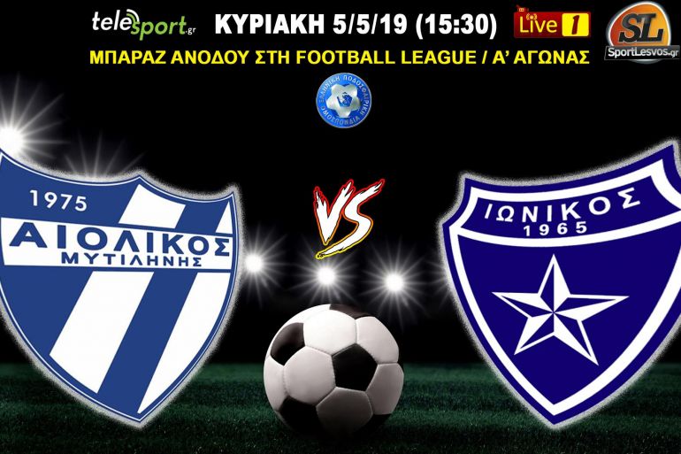 Σε μια σημαντική συμφωνία ήρθαν Telesport.gr και Αιολικός, προκειμένου σε συνεργασία με το SportLesvos.gr, να μεταδοθεί ζωντανά με εικόνα και ήχο το πρώτο ματς των μπαράζ ανόδου με αντίπαλο τον Ιωνικό από το Στάδιο Μυτιλήνης, την προσεχή Κυριακή (5/5, 15:30).
