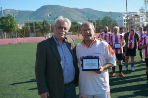 Στους παρόντες και ο πρόεδρος των Σουρμένων κ. Βασίλειος Βάσιος και Χρήστος Κορτζίδης, γιος του παλιού Δήμαρχου και ο ίδιος ανώτατος άρχοντας του Ελληνικού-Αργυρούπολης μέχρι το 2014 ο οποίος και απένειμε πλακέτες στους παλαίμαχους των δύο ομάδων.