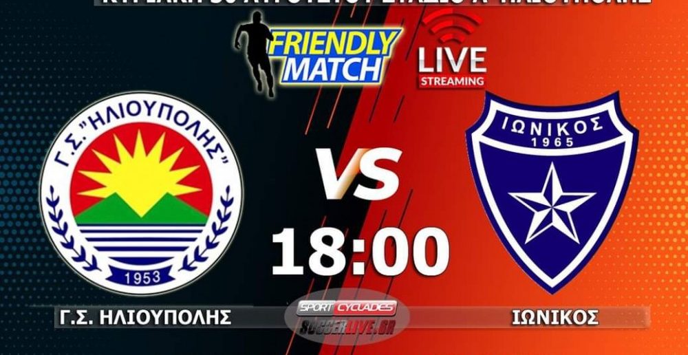 Την Κυριακή στις 18.00 ο ΓΣ Ηλιούπολης θα υποδεχτεί σε φιλικό παιχνίδι τον Ιωνικό. Ο αγώνας θα γίνει κεκλεισμένων των θυρών και θα έχετε τη δυνατότητα να τον παρακολουθήσετε από το κανάλι του soccerlive.gr στο youtube!