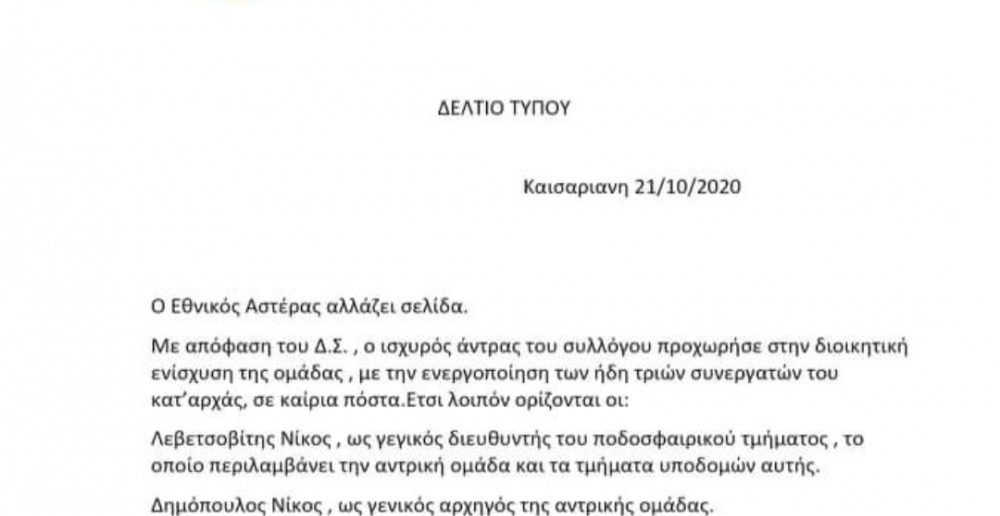 Ο Εθνικός Αστέρας αλλάζει σελίδα!