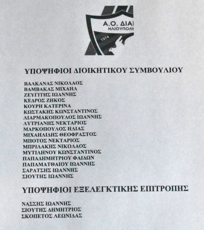 Οι εκλογές της Διάνας Ηλιούπολης βρίσκονται σε εξέλιξη και ήδη έγιναν γνωστά τα πρόσωπα που θα συμμετάσχουν στη διαδικασία 16/06/21