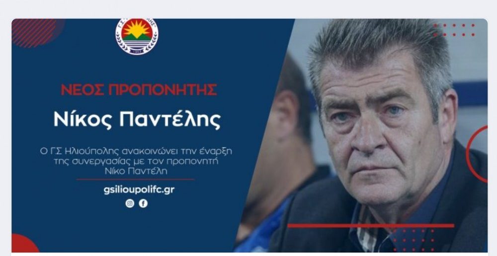 Η διοίκηση του ποδοσφαιρικού Γ.Σ Ηλιούπολης ανακοινώνει την έναρξη της συνεργασίας της με τον προπονητή Νίκο Παντέλη.