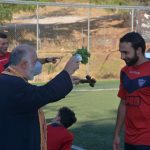Έγινε ο αγιασμός ,και οι ομιλίες του προέδρου Ηλία Μαρκόπουλου του Δ Σ και του προπονητή Γιάννη Κουσάνα.