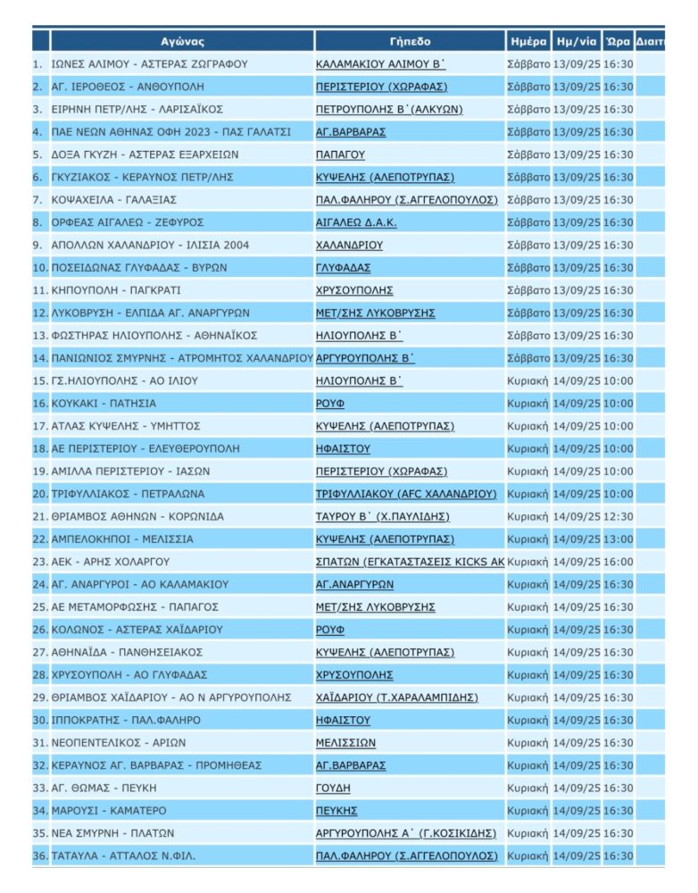 Το Σαββατοκύριακο 13-14/09/25, αναλυτικά οι αγώνες α’ φάσης Κυπέλλου της ΕΠΣΑ αναλυτικά.