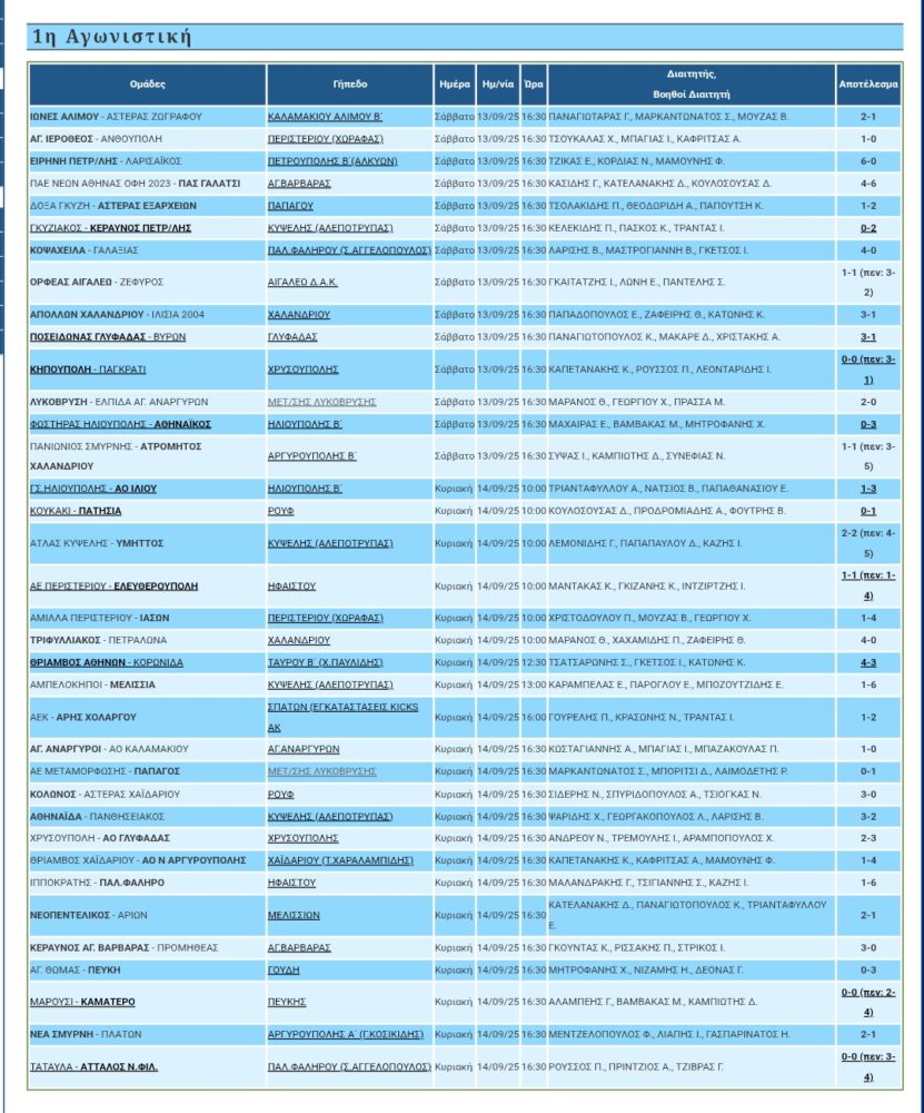 Αποτελέσματα ΕΠΣΑ. 08,09/11/25