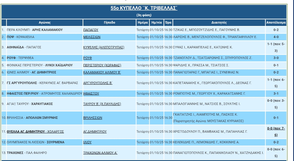 Χωρίς εκπλήξεις σήμερα Τετάρτη για το κύπελλο ΕΠΣΑ . αναλυτικά τα αποτελέσματα, σε πολλά από αυτά ολοκληρώθηκαν στα πέναλτι.