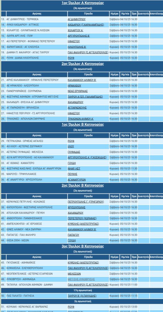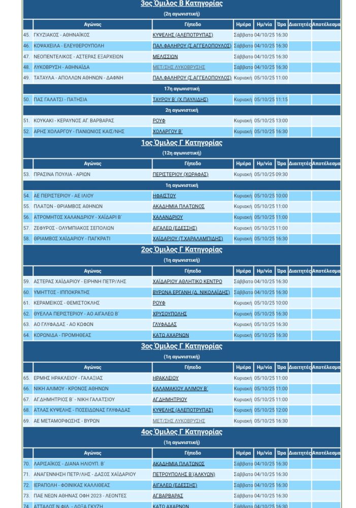 Γ’ εθνική πρόγραμμα- διαιτητές 6ος όμιλος 22, 23/11/25