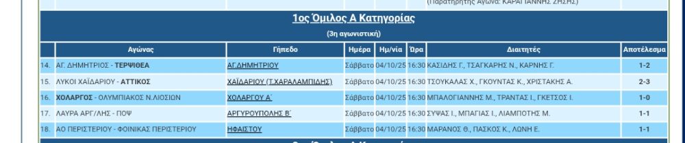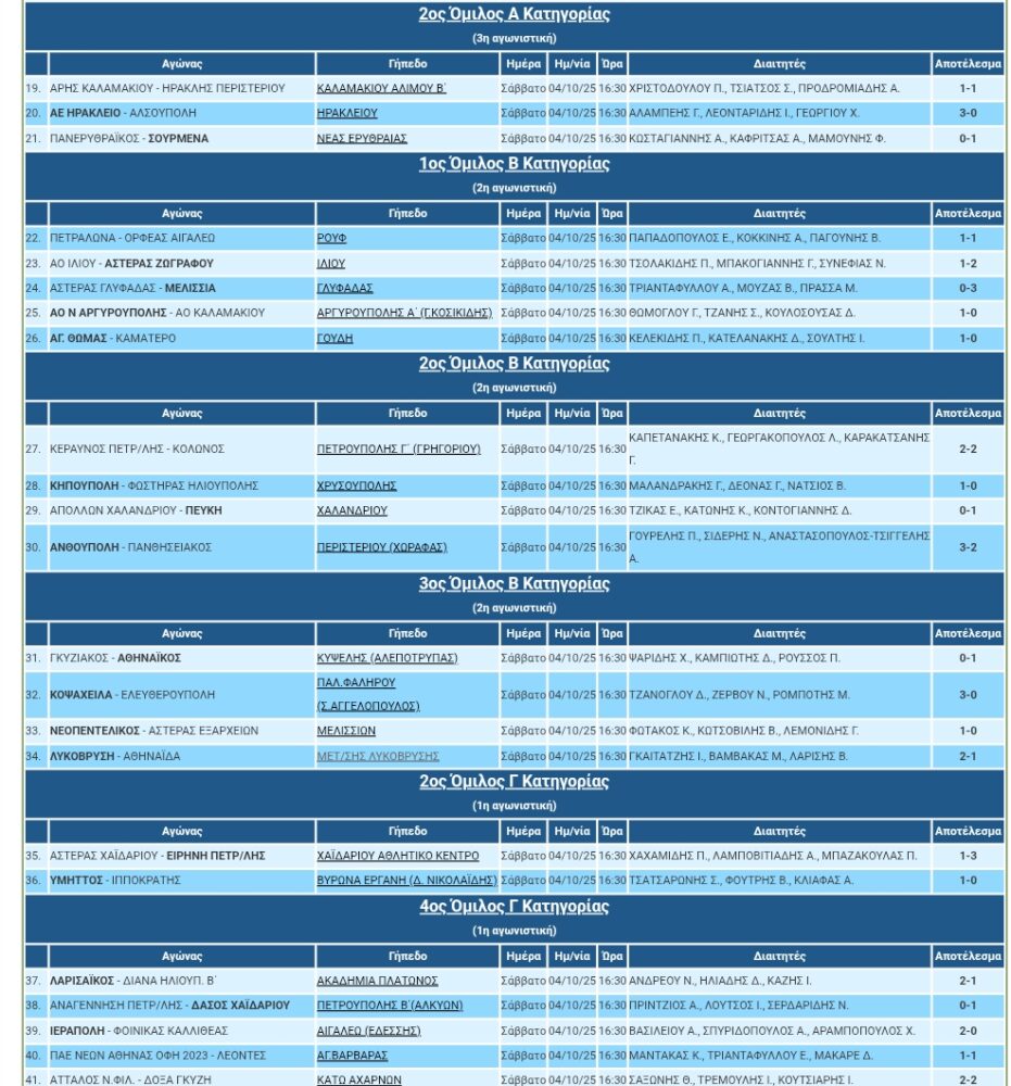 Αποτελέσματα ΕΠΣΑ Σ/Κ 04,05/10/25 (φώτο)