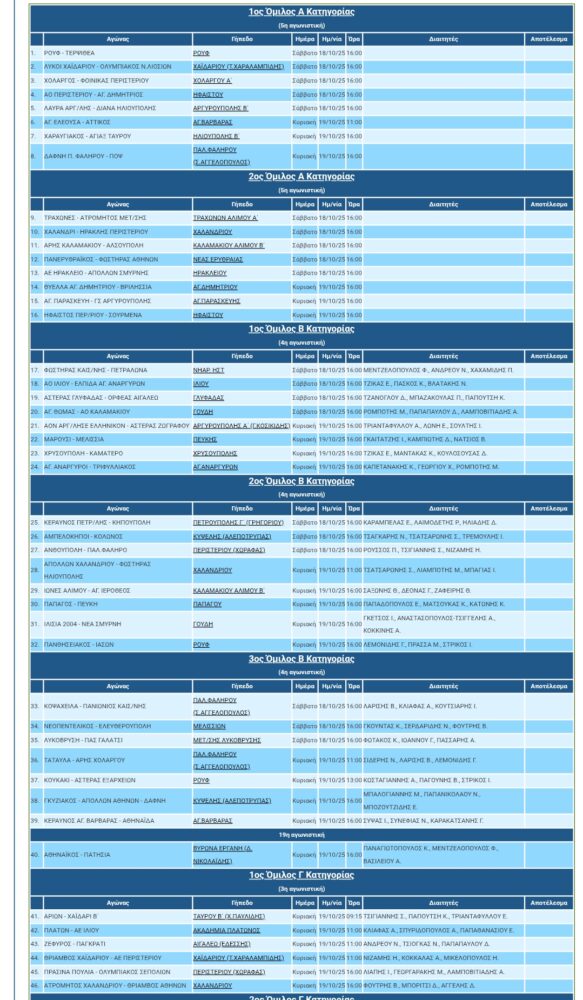 Πρόγραμμα Α’ κατηγορίας ΕΠΣΑ 25,26/10/25