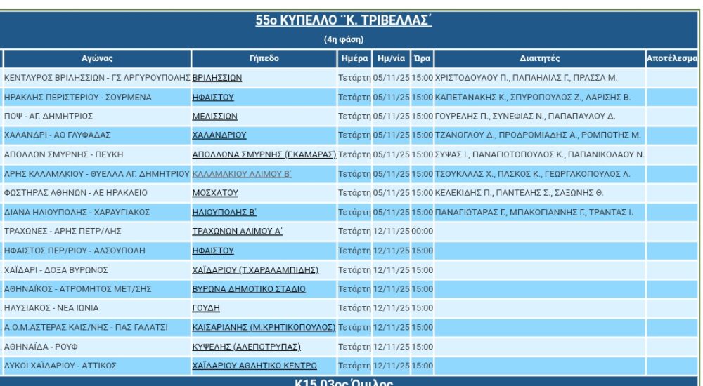 Κύπελλο ΕΠΣΑ Τετάρτη 5/10/25