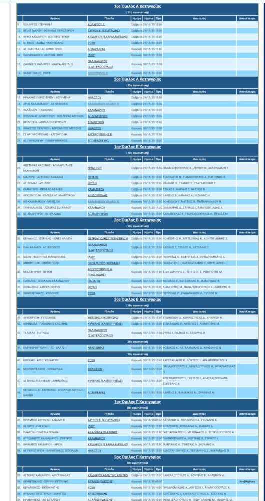 Αποτελέσματα ΕΠΣΑ 22,23/11/25