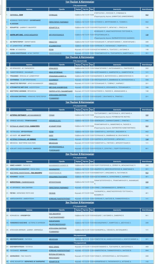 Αποτελέσματα ΕΠΣΑ 07/12/25
