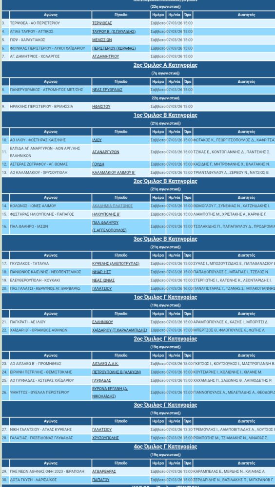 Το πρόγραμμα του Σαββάτου 07/03/26 της ΕΠΣΑ