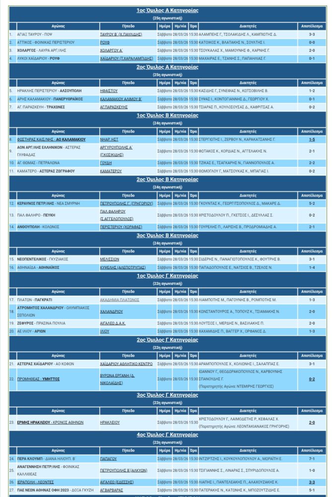 Τα αποτελέσματα της ΕΠΣΑ 21,22/03/26 (φωτογραφίες)