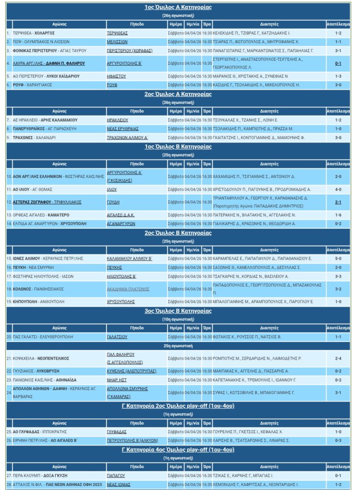 Αποτελέσματα ΕΠΣΑ 04/04/26