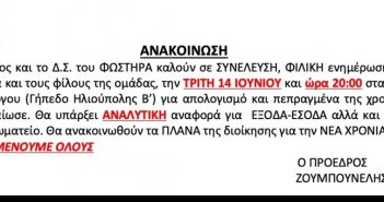 Ανακοίνωση του Φωστήρα Ηλιούπολης ο πρόεδρος και το ΔΣ καλούν όλα τα μέλη του Συλλόγου…