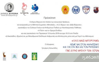 Επικαιρότητα 13 Ιουνίου 2018 Φιλανθρωπική εκδήλωση από τον Δήμο Βύρωνα και τα αθλητικά σωματεία του Δήμου